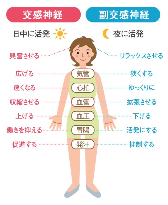 この2つの神経がシーソーのようにバランスよく切り替わることで、私たちの体と心は健康な状態を保っています。