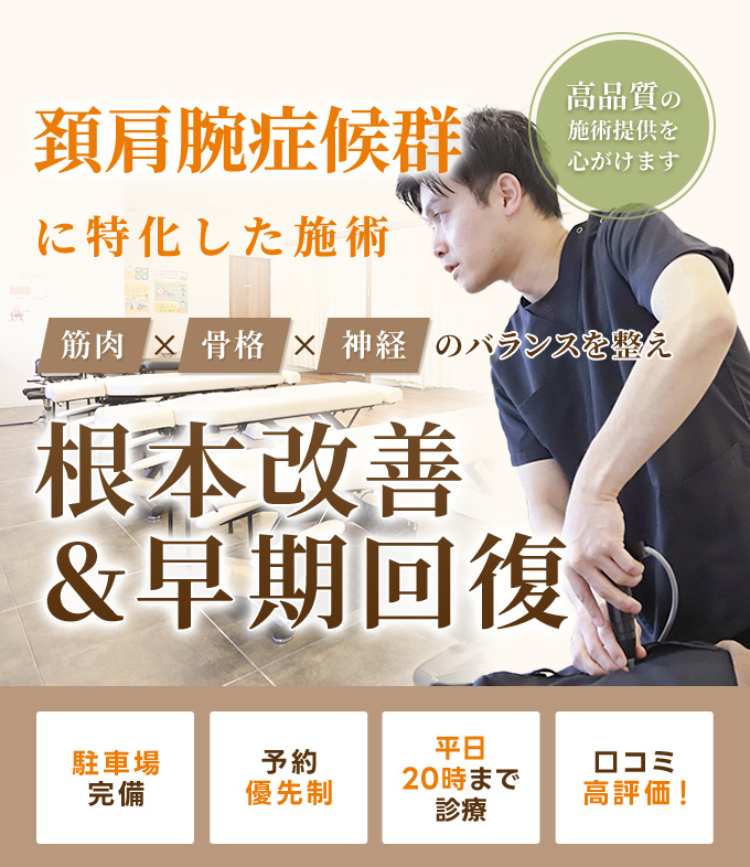 ただしこれらの動作を行ったわけでもないのに首や肩などの部分に痛みや痺れがあったり、背中にこの苦しさを感じるなどといった場合は頚肩腕症候群の可能性があります。