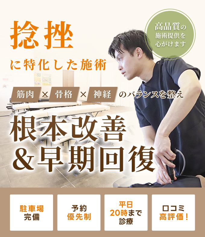 関節にズレが残った状態でRICE処置を行っても効果は低いため、当院では、関節整復で関節アライメントを整えてからRICE処置を行って効果を最大化させていきます。