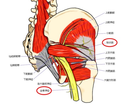 梨状筋(りじょうきん)という筋肉のすぐ近くを「坐骨神経」が通っています。