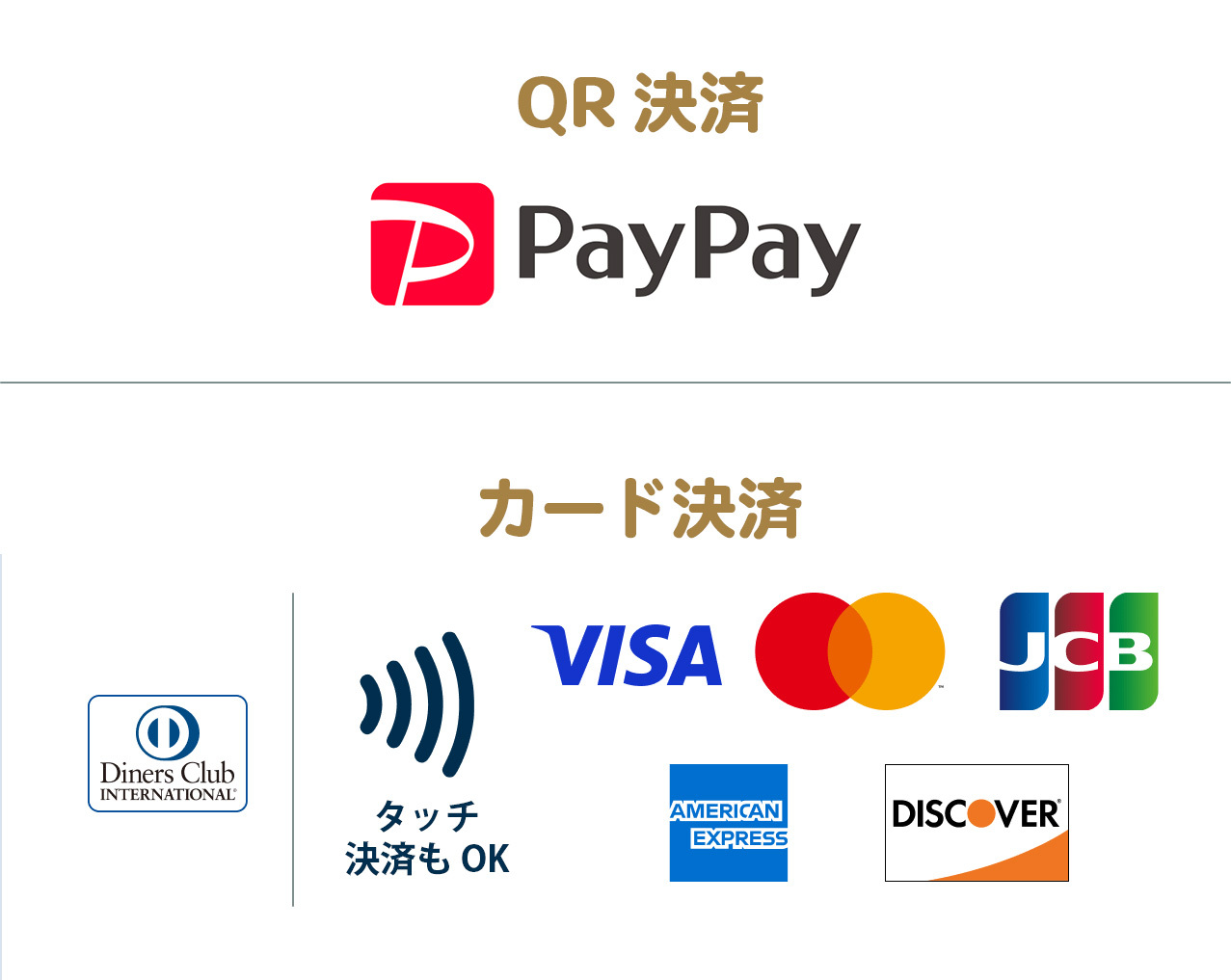 PayPay決済やVISA・master・JCB・AMEX等のクレジットカードが