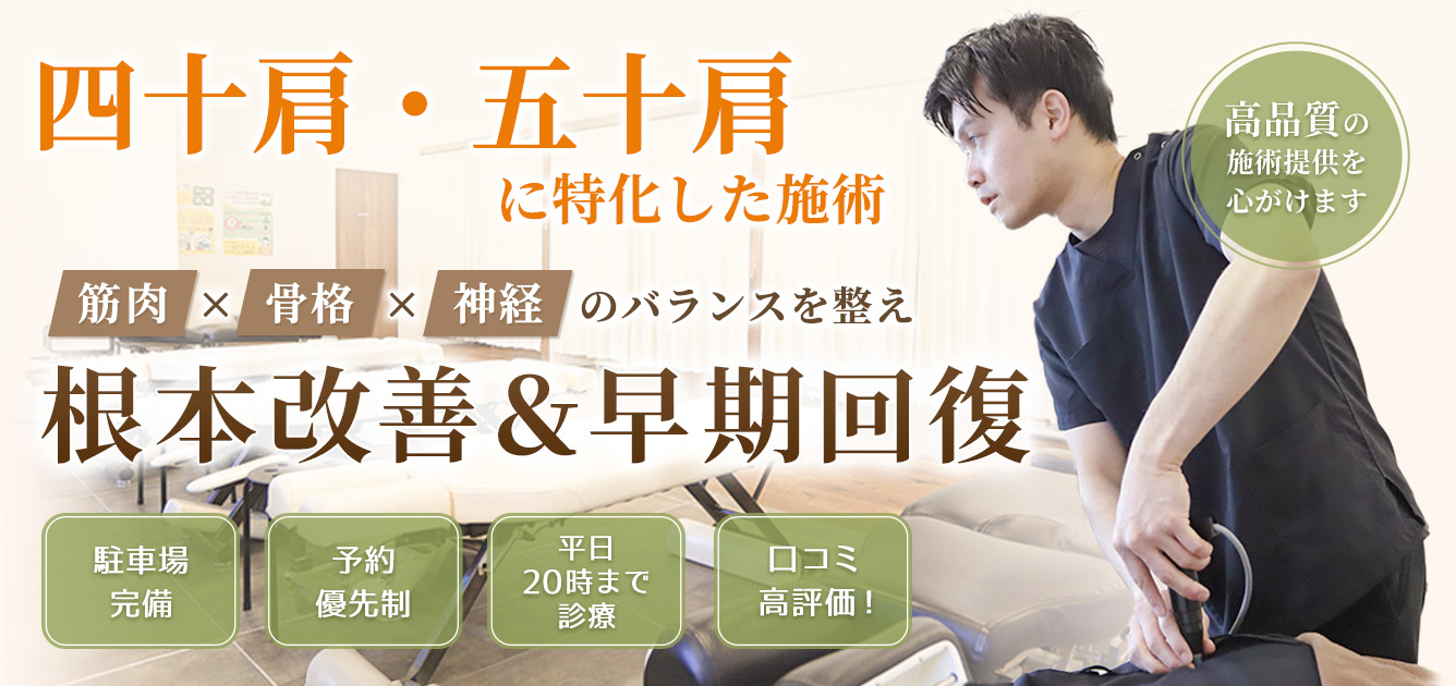当院では、固まってしまった肩関節や、周囲の筋肉の調整をメインに治療を行います。